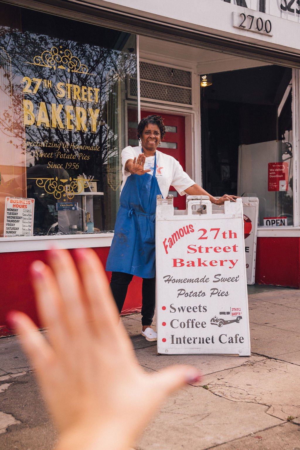 “27th Street Bakery started somewhere around the 1940s, when my grandparents migrated from the South to Los Angeles,” Jeanette Pickens told us. Her grandfather, Harry Patterson, was an entrepreneur with a vision. He and his wife Sadie wanted to bring the flavors and comfort of the South to Central Avenue, opening a restaurant where pies quickly stole the show. “It started off as a restaurant, but the main staple in the restaurant on the menu were pies and cakes. What kind of pies? Sweet potato pies.”