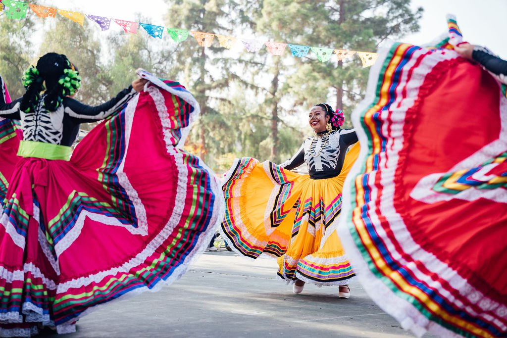“For Day of the Dead we do wear like a skeleton leotard to go with the tradition of dressing like skeletons, but normally we wear a big skirt, a very high collar top with a lot of ribbons and a lot of colors so that we could do a lot of beautiful movement with our skirts.”