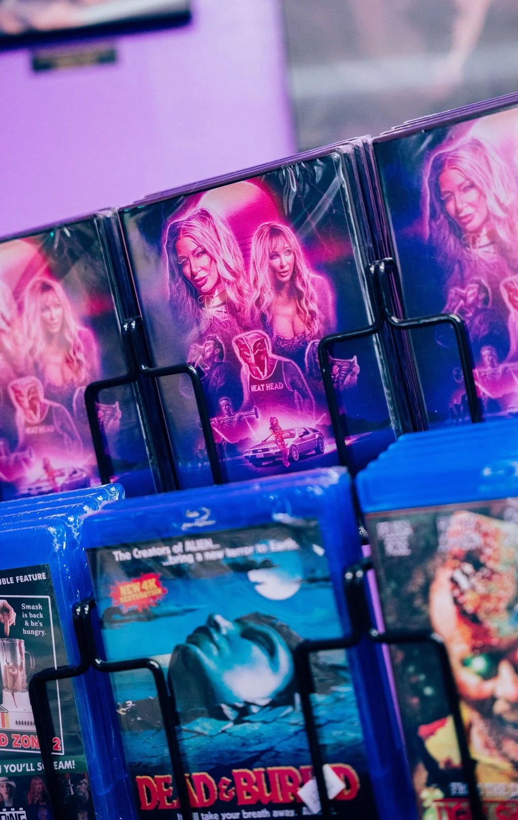Soon after, the owners of Dark Delicacies, a beloved local horror shop, told them they were retiring and offered the team the space. Vanessa told us, “A fun fact is that when Ama wrote the script for Slashercise, I named the gym in it ‘Killer Fitness.’ So it’s actually in our DVD. A year and a half later, it became real.”