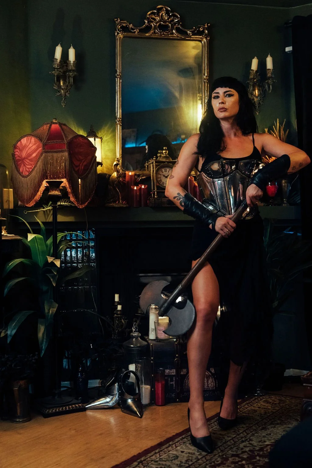 But for all the drama in her design, Ashley is disarmingly warm and quick to laugh. “People assume if you love dark aesthetics, you must be dark inside,” she says. “It couldn’t be further from the truth. The sweetest people I’ve ever met are the ones who look the scariest. It’s about knowing who you are, not about being evil.”