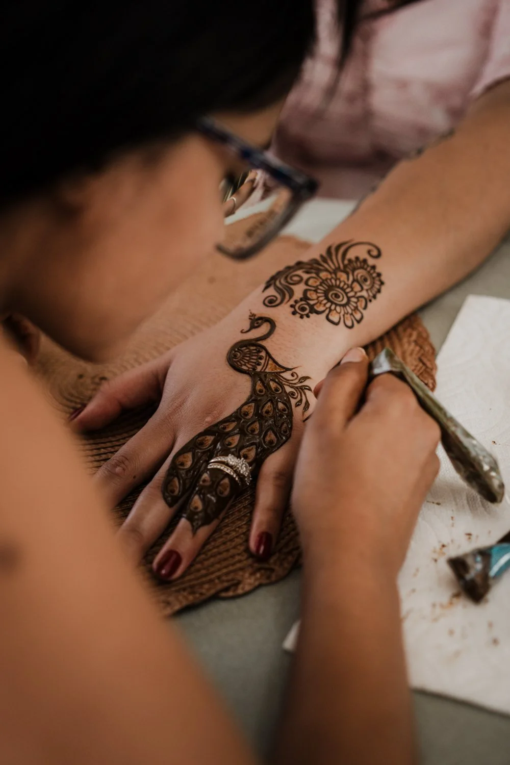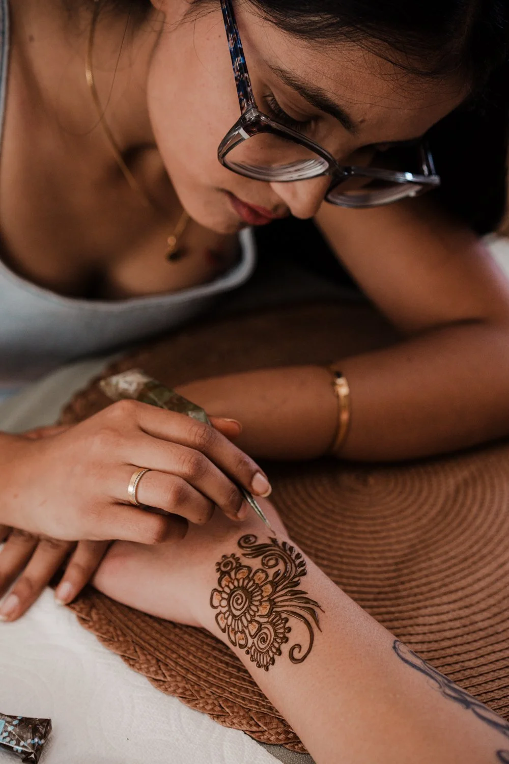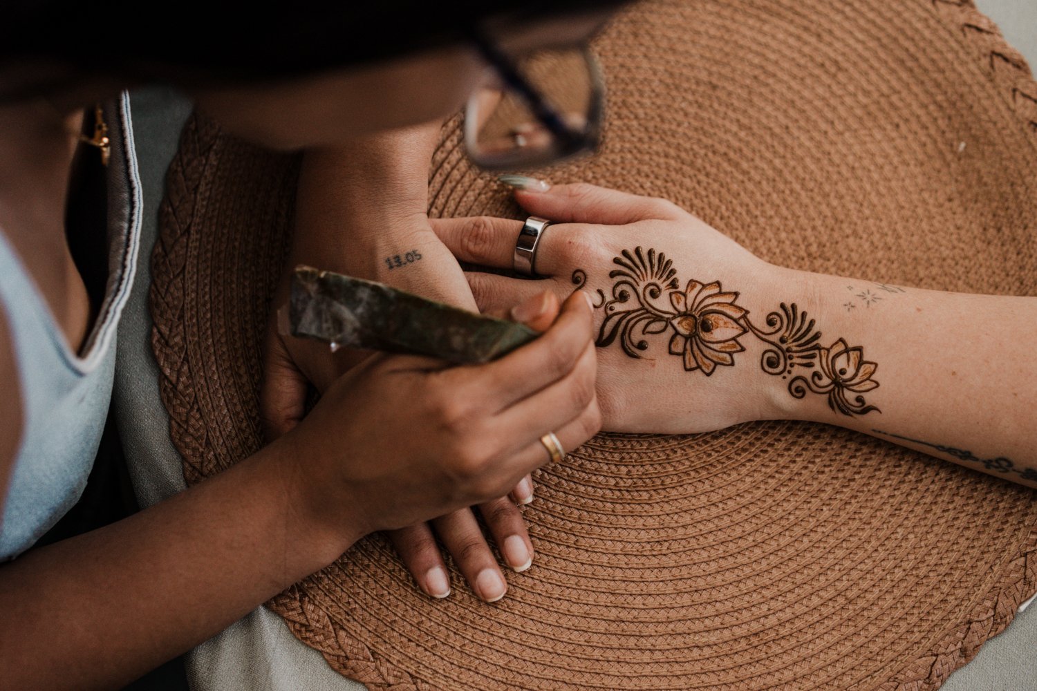 “I fell in love with henna. I had a very core memory from my childhood,” she shared. “It was my neighbor's wedding and I remember my grandma having that little stick like a matchstick thing and this henna paste. And she did on my hand, drew a line and leaves.”