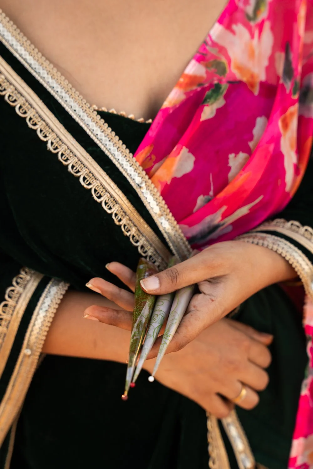 Today, the tools are different. The process is refined. Vanshika now makes her own cones and creates intricate designs with intention and skill. But the meaning hasn’t disappeared, it’s expanded.